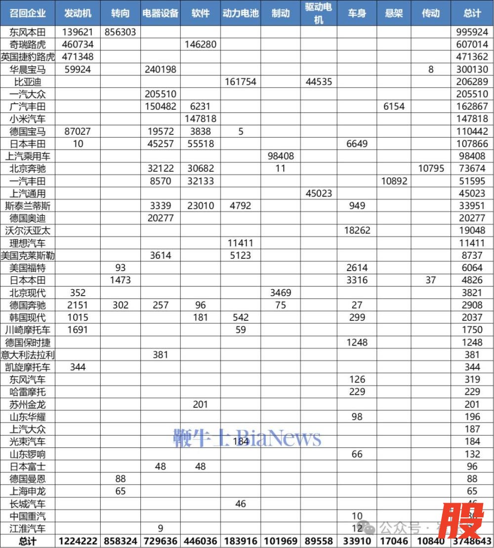 数据显示,2023年累计召回181批次728万台,2024年累计召回160批次879万台,2025年1-12月累计召回129批次375万台,累计召回数量同比下降57%。