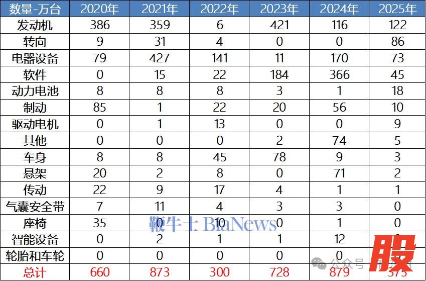 2025年的新能源车召回的软件缺陷较多,大部分属于很小的隐患问题,OTA升级即可解决,总体风险不大;制造的上游供应商的制造隐患较多,召回数量不大。