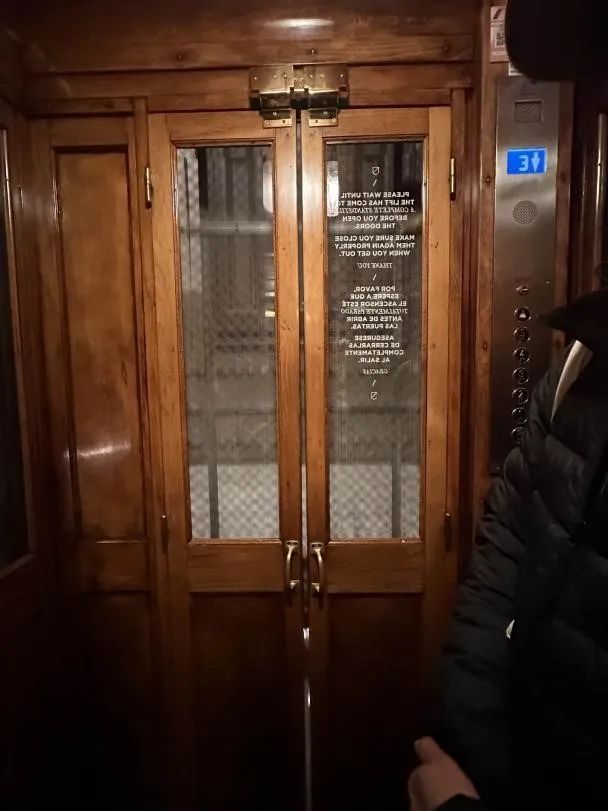 一开始以为类似于国内的民宿,但从check in 后的进门就发现真的很不一样。首先是特别的“手动挡”电梯。电梯门需要手动拉开,走进电梯后,需要合上铁丝门,再关上木制门,电梯才开始缓缓上升。