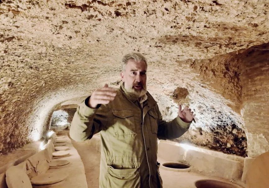 酒庄负责人Pablo Calatayud向我们介绍,尽管现在葡萄酒大部分已经工业化生产,但在这里,他们仍坚持用橡木桶酿造,原料还是三种古老的葡萄品种(Mando、Arcos、Forcalla)。