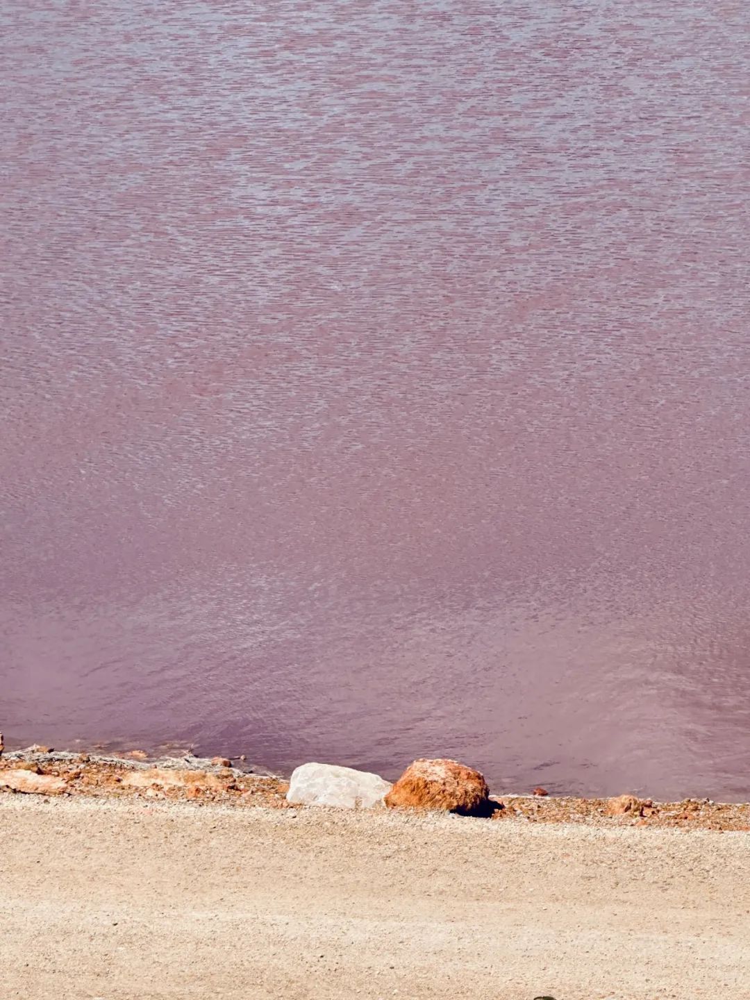 听导览员解说道:粉色的由来,是湖底杜氏盐藻产生的β-胡萝卜素,在阳光的反射下,呈现出独特的粉色。