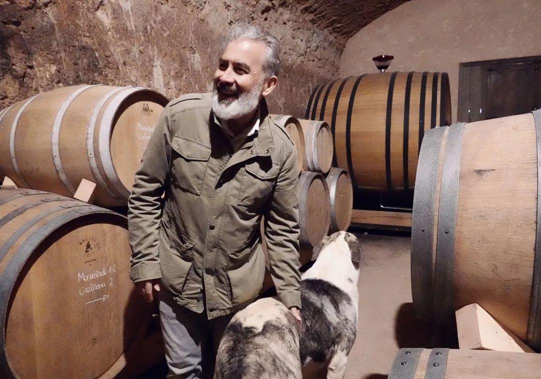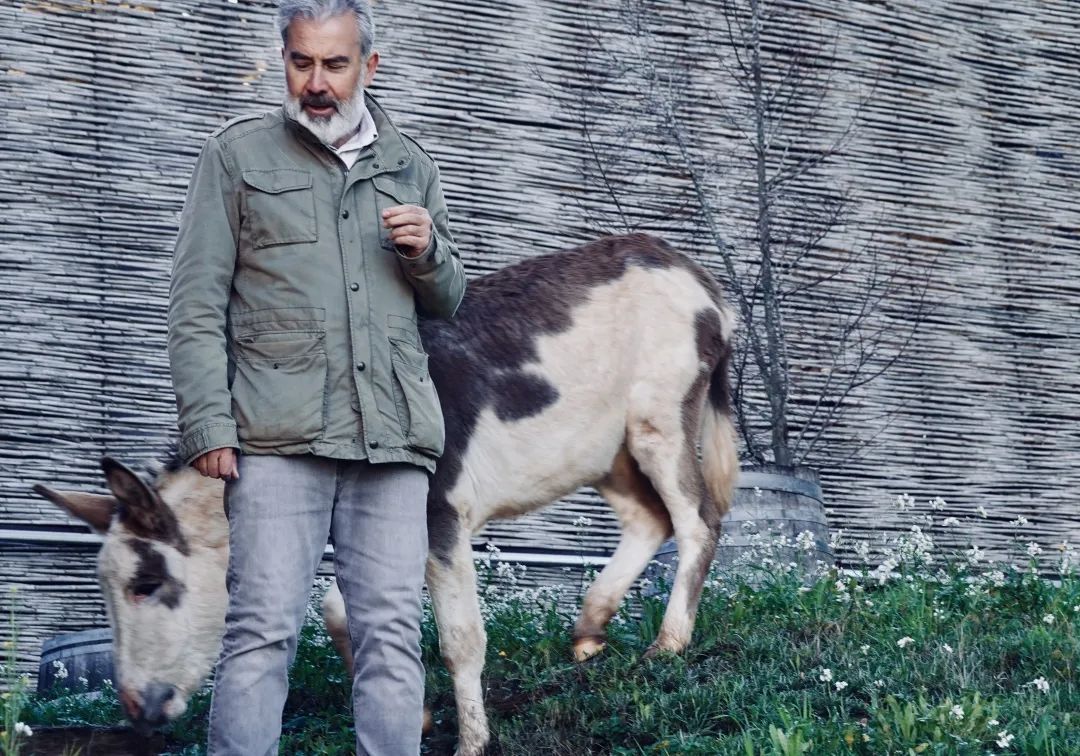 在开阔的葡萄园里,这个季节的葡萄树还在沉睡。葡萄园里有只牧羊犬和小驴在吃草,刚走进原以为是一个小农场,其实它是瓦伦西亚省最著名的酒庄之一。